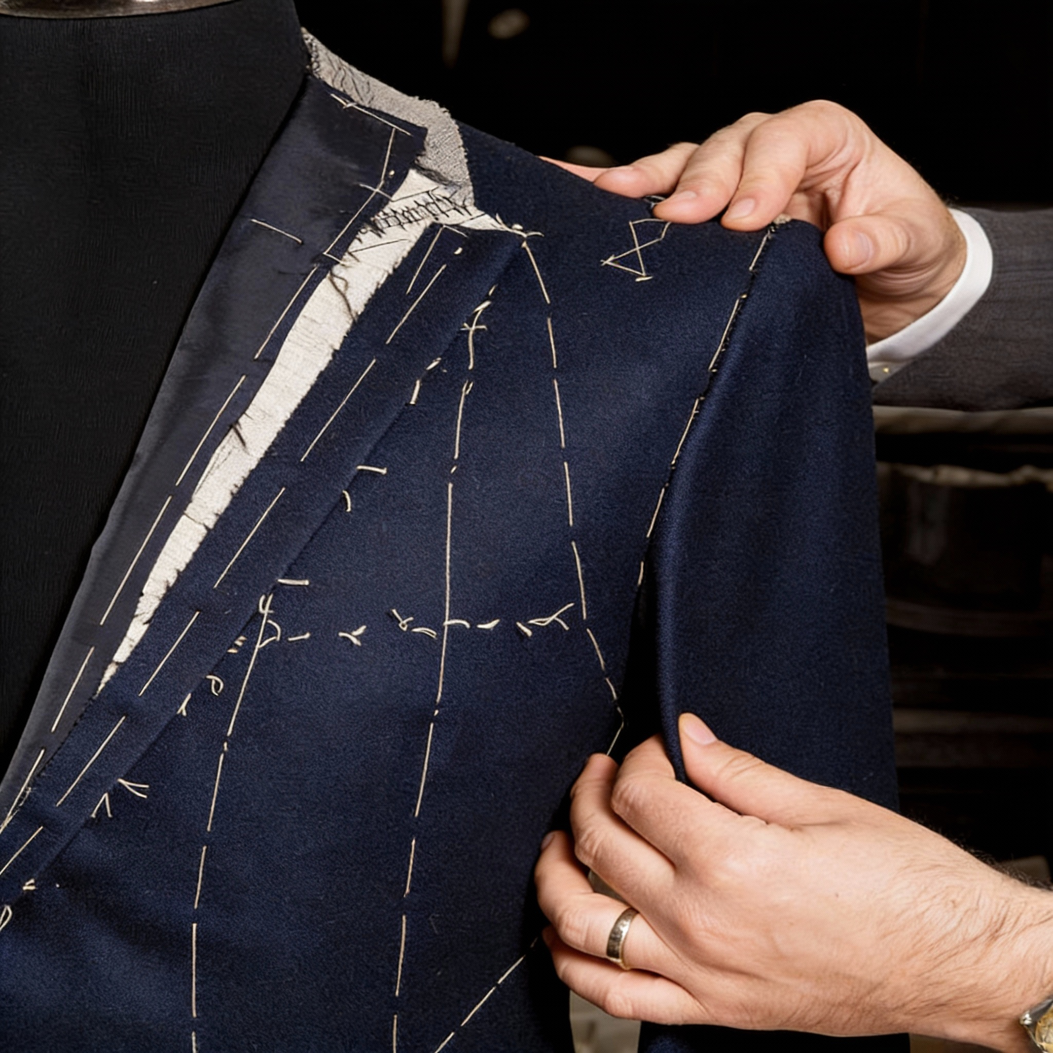 You can personalize every element of your suit — from lapel style, button placement, pockets, vents, and linings to fine details such as embroidery and monogramming. Our design experts guide you through the entire process during your consultation.