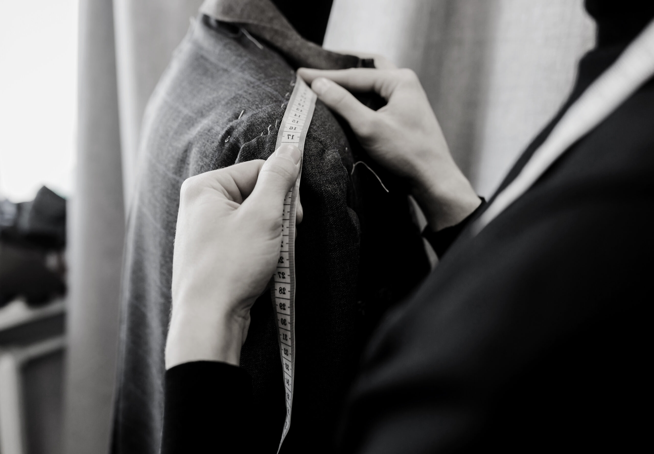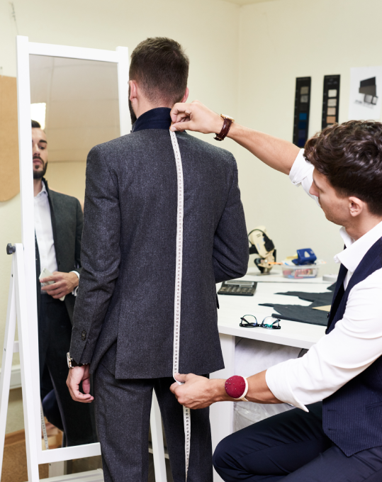 Your garment is adjusted by skilled tailors using refined techniques suited to its fabric and structure.